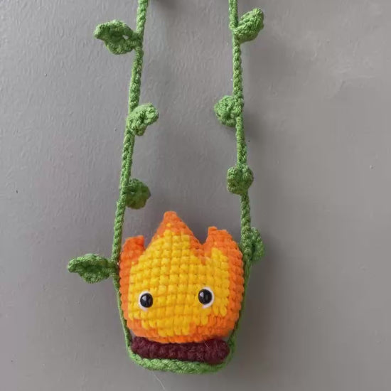 Bring a spark of Studio Ghibli magic to your car with this adorable Crochet Calcifer Car Hanging! Inspired by the iconic fire spirit from Howl’s Moving Castle, this handmade crochet charm adds warmth and personality to your rearview mirror or car interior.