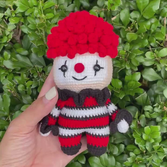 This crochet Halloween clown doll is the perfect mix of creepy and handmade artistry. Designed with spooky stitches and eerie clown features, this amigurumi horror doll makes a haunting addition to your Halloween decor or a unique collectible for gothic toy lovers.