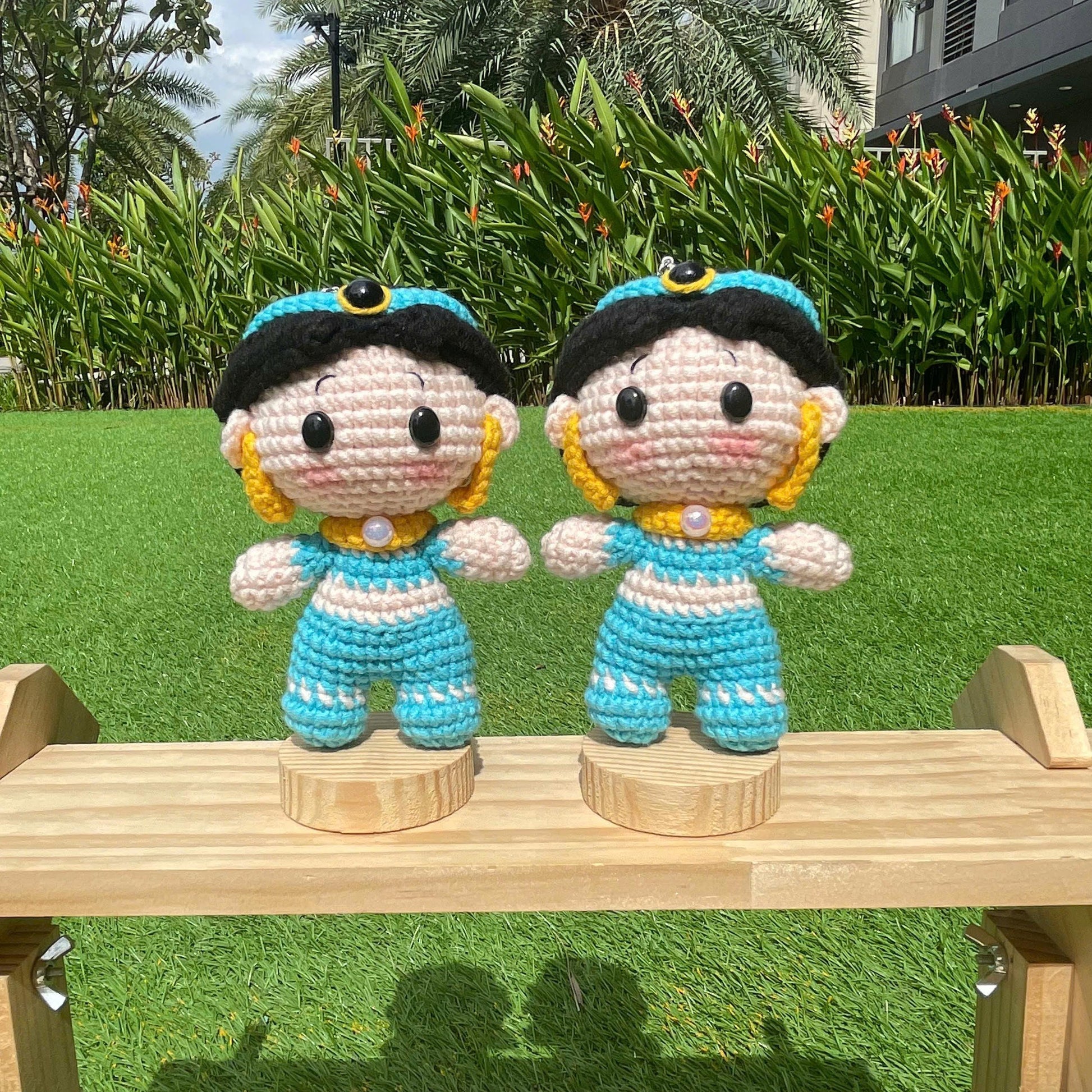 Each crochet Jasmine keychain is carefully handmade with premium yarn, making it soft, durable, and unique. A perfect gift for fans, princess lovers, or anyone who enjoys kawaii-style accessories.