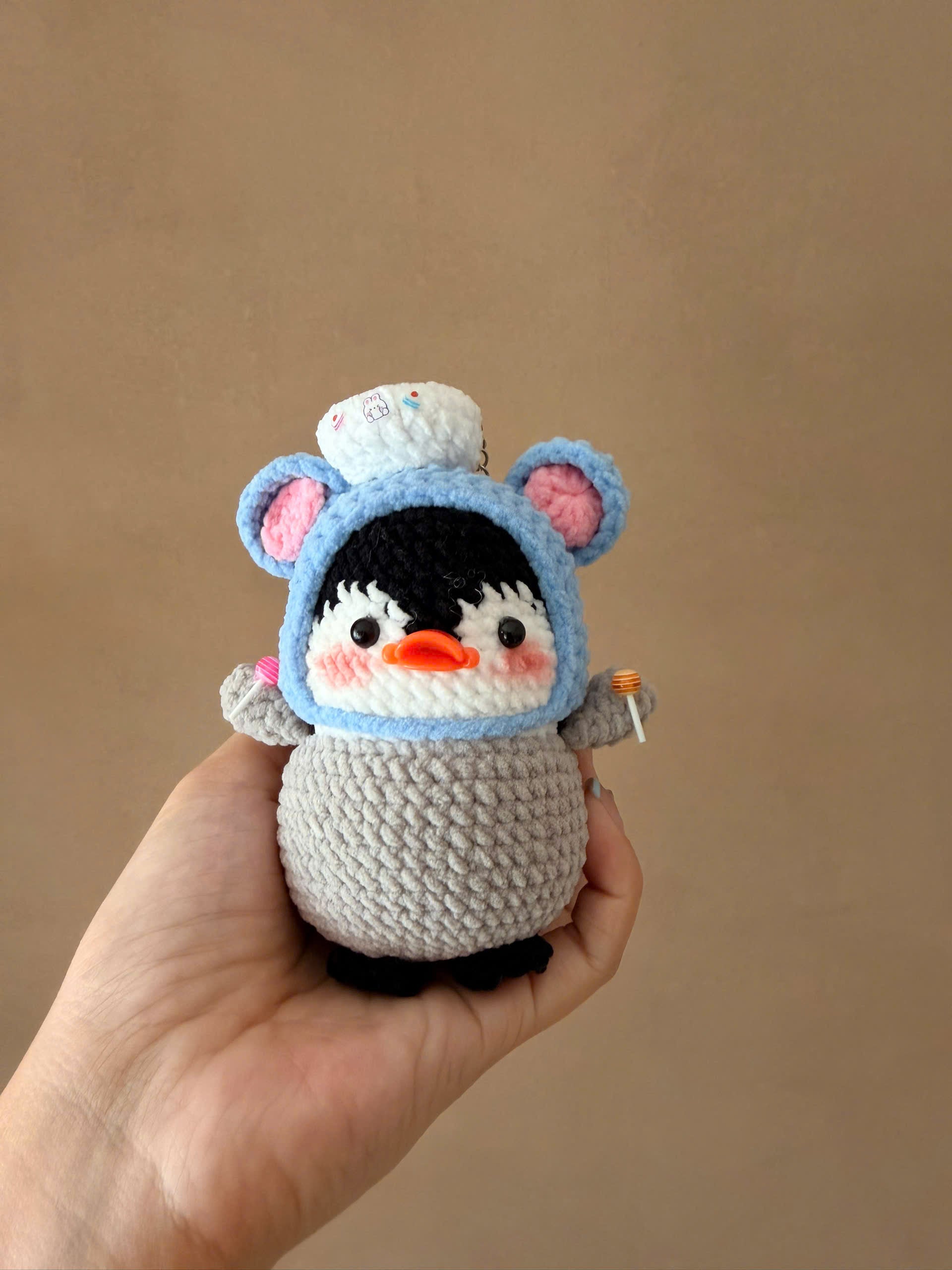 Add a touch of cuteness to your keys, bag, or backpack with this handmade crochet penguin cosplay keychain. Carefully crocheted with soft yarn, this adorable amigurumi charm makes a perfect gift for kawaii lovers and crochet collectors.