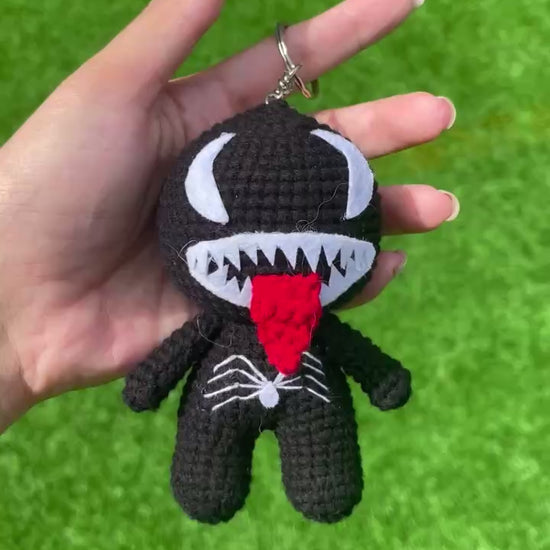Handmade Crochet Venom Superhero Keychain