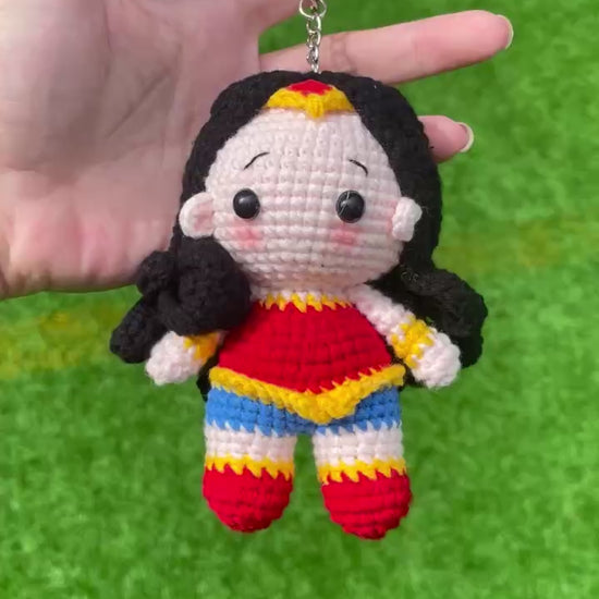 Carry girl power with you! This crochet Wonder Woman keychain is handmade with love, featuring her iconic armor and lasso. A perfect bag charm, collectible, or thoughtful gift for comic fans, especially strong women and superhero lovers.